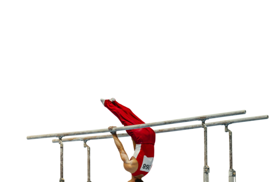 gymnast exercise parallel bars in championship gymnastics isolated on transparent background, element zhou shixioug