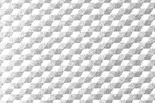 Macro halftone pattern of repeating hexagonal pyramids seen from above, forming staggered diagonal tiles in black ink on a transparent background.