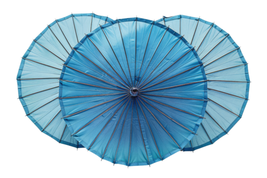 Two light blue parasols overlapping, showcasing intricate details and traditional design. background removed