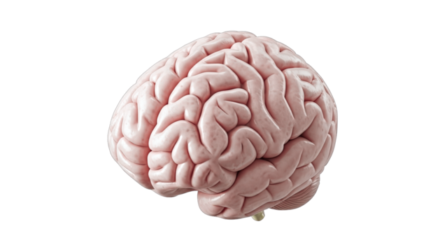 Human brain model isolated PNG, anatomical representation with frontal, parietal, and temporal lobes for medical education and study