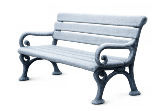 Snow covered park bench on a cold winter day in a peaceful outdoor scene on transparent background