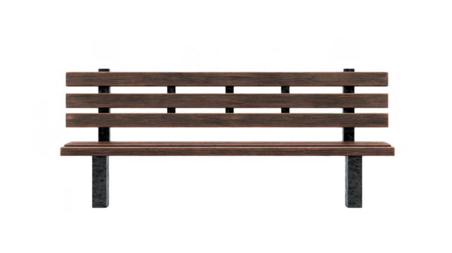 Wooden bench on transparent background for urban scenes