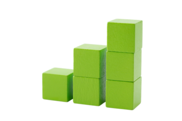 透明背景(png)に階段状に積まれた黄緑色の積み木