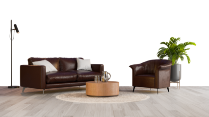 Modern Flat Screen TV on Wooden Entertainment Stand isolated on transparent background