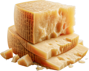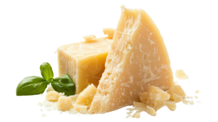 Aged parmesan cheese or parmigiano reggiano isolated on a transparent background