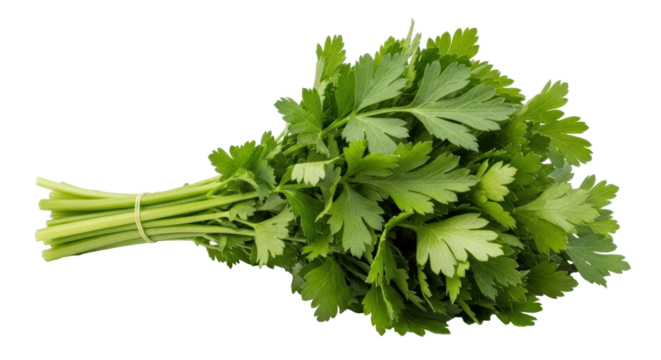 Fresh green parsley sprig isolated on transparent background for cooking and garnish