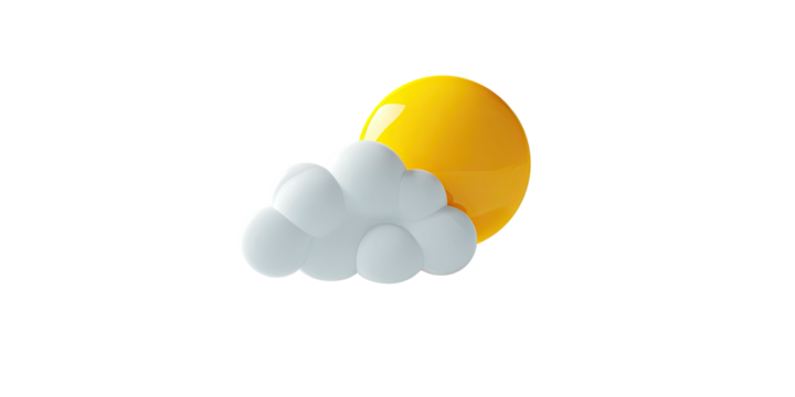 A 3D rendered cartoon weather icon depicting a fluffy white cloud partially obscuring the yellow sun