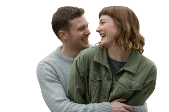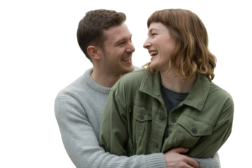 Happy couple embracing love in transparent background