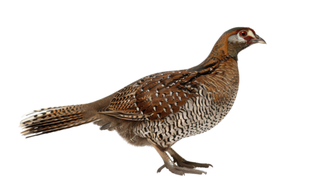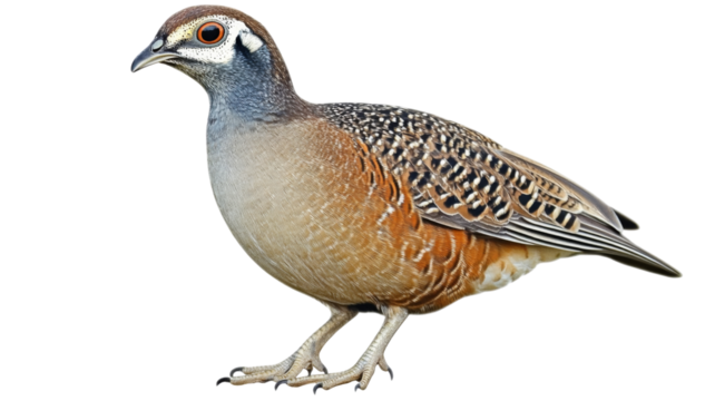 Close-up of a beautifully patterned partridge standing. PNG format