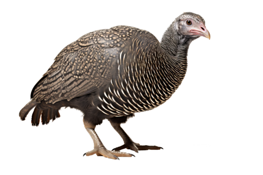 Guineafowl bird png with detailed plumage isolated on transparent background, ideal for wildlife illustrations, nature-themed projects, and ornithology studies