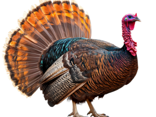 Wild Turkey Tom with Fanned Tail Feathers Isolated PNG