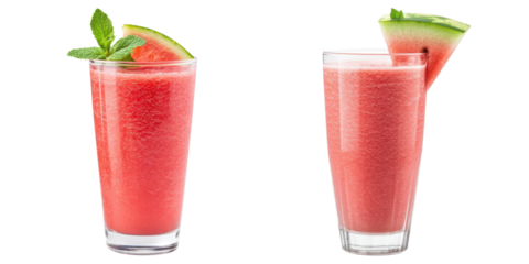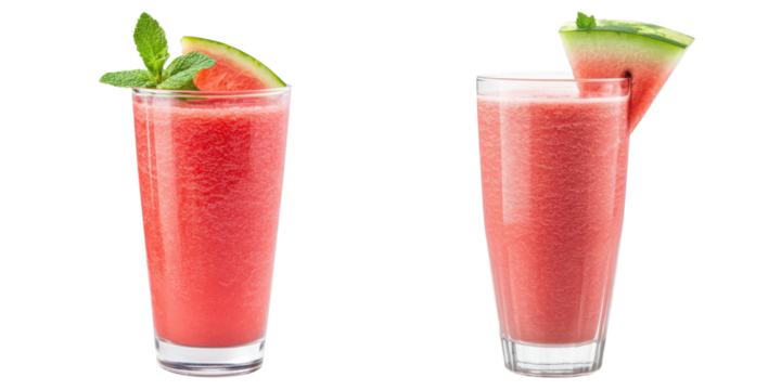 Refreshing watermelon smoothie in tall glasses with mint garnish
