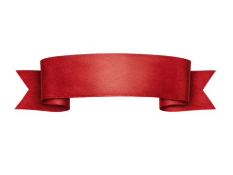 Red ribbon banner for decoration and design projects on a transparent background, cut out