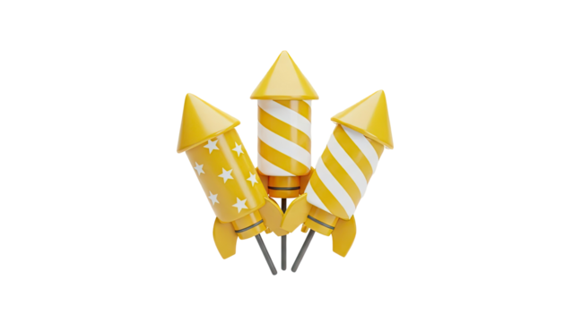 Vibrant rocket fireworks with transparent background for festive celebrations