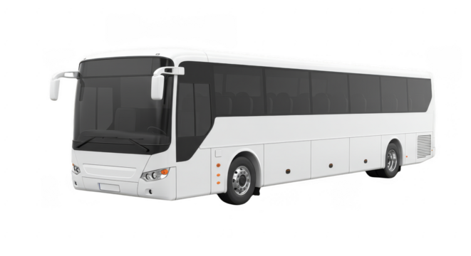 White passenger bus isolated on transparent background