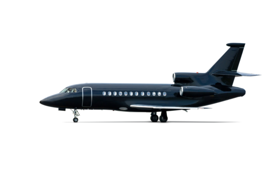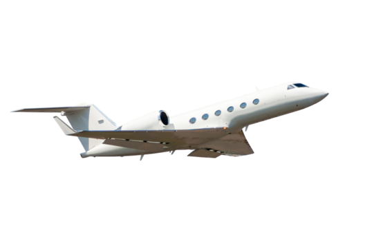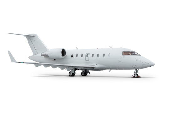 White luxury corporate aircraft with an opened gangway door isolated on transparent background