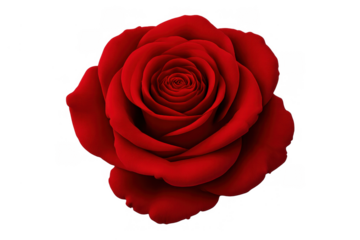 Red rose flower head blooming on a transparent background, depicting concepts of love, romance, beauty, and passion