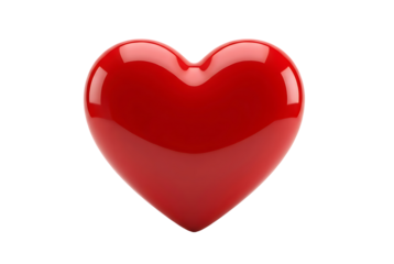 A vibrant glossy red heart symbol on a black background, representing love and passion isolated on transparent background
