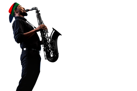 Musician playing saxophone passionately during a performance