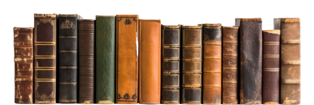 PNG Varying ages and designs of the spines of old books publication library white background. AI generated Image by rawpixel.