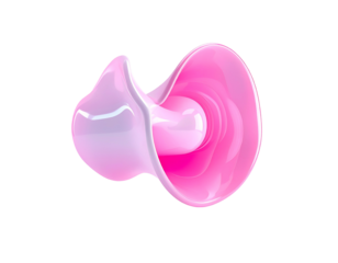 Abstract rendering of a soft purple and pink gradient blob with smaller spheres floating above it on transparent background