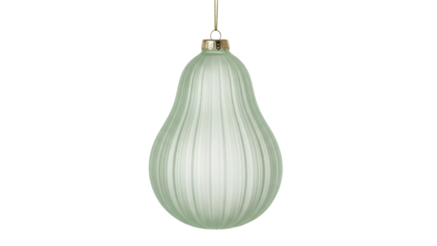 Isolated pastel green Christmas bulb ornament hanging, festive holiday decoration still life