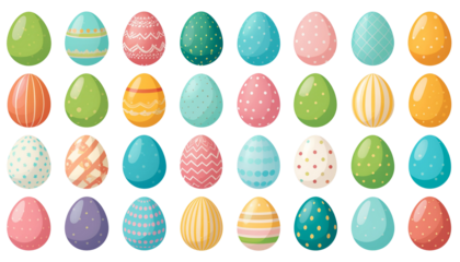 Whimsical pastel easter pattern with rabbits and eggs on transparent background