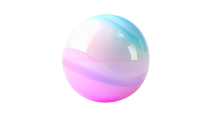 Iridescent sphere with colored swirls, glossy finish against black backdrop