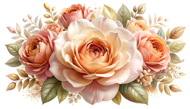 Watercolor floral arrangement with pastel blossom and leaves