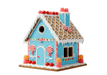 Delightful Pastel Blue Gingerbread House: Festive Holiday Decoration on white background