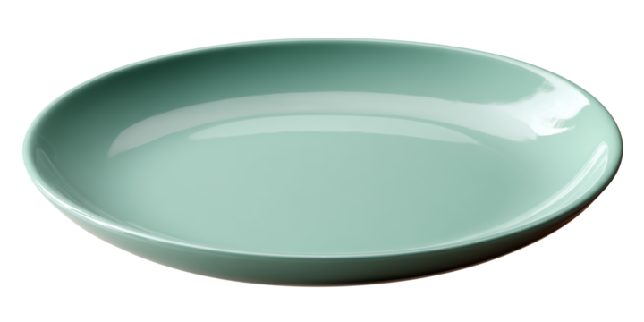 empty oval pastel green plate featuring a smooth gentle finish in a clear angled view