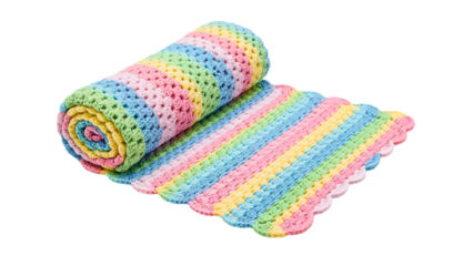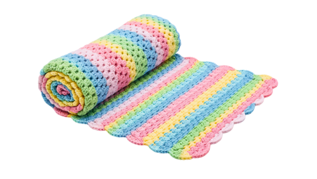 Rolled Colorful Crocheted Blanket with Pastel Stripes