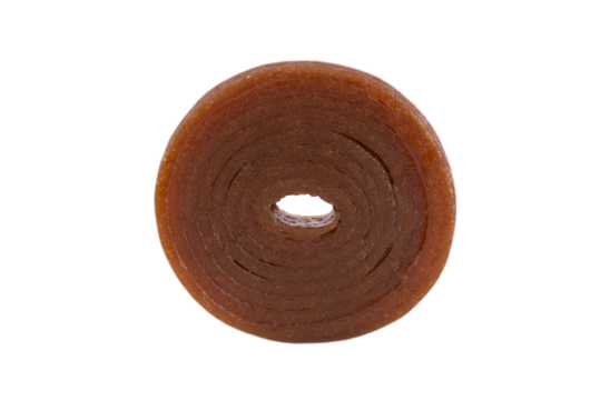 PNG, One yellow roll of fruit pastille and leaves, isolated on white background