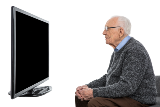 Senior relaxing with television isolated on transparent background