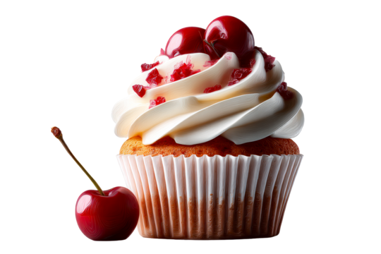 Delicious cherry topped cupcake with creamy frosting and cherry