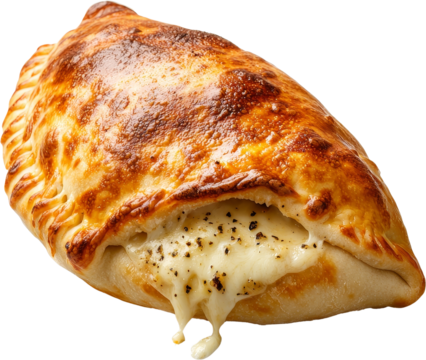 Isolated savory pastry dough pocket, filled turnover, ready to bake, savory stuffing inside