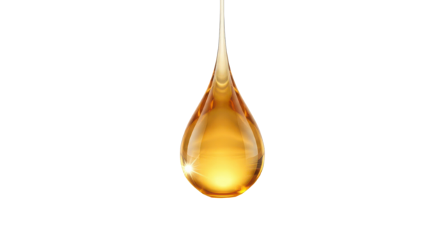 Golden Amber Viscous Liquid Drop isolated PNG with Transparent Background