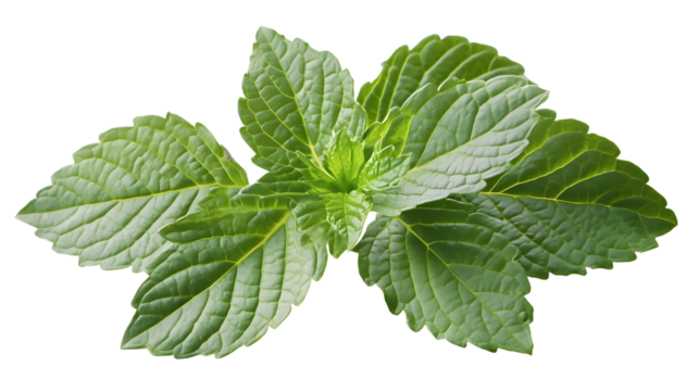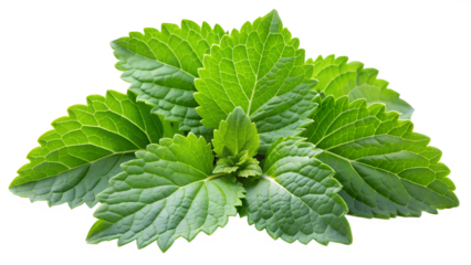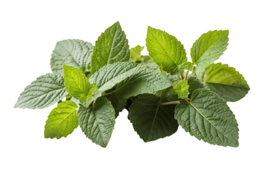Fresh and vibrant green patchouli leaves isolated with transparent, white background, png, highlighting their detailed textures