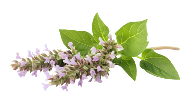 Thai Basil Flower and Patchouli Plant on White Background - Botanical Beauty and Eleg