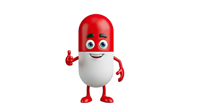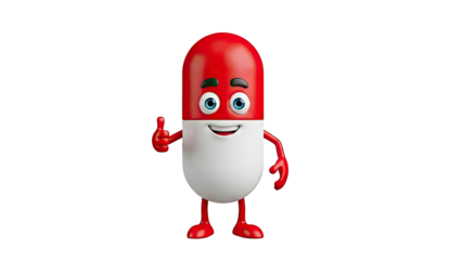 3D Happy Red and White Capsule Character Giving Thumbs Up on transparent background
