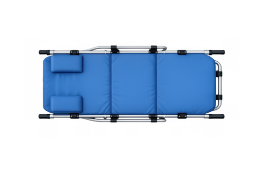 Top view of blue medical stretcher with cushions for emergency and healthcare design