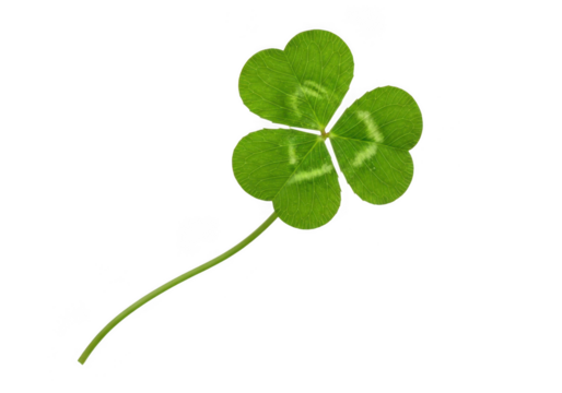 A single vibrant green threeleaf clover stem isolated on transparent background, symbolizing luck and natures simple beauty