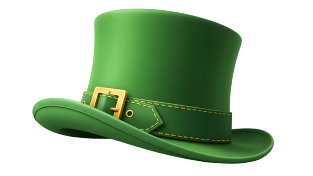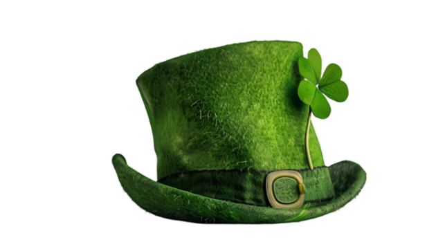 A vibrant green hat, a symbol of luck, featuring a silver band and shamrock