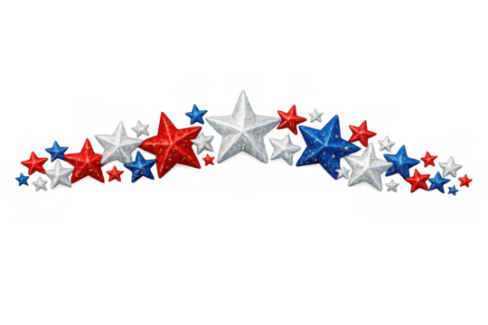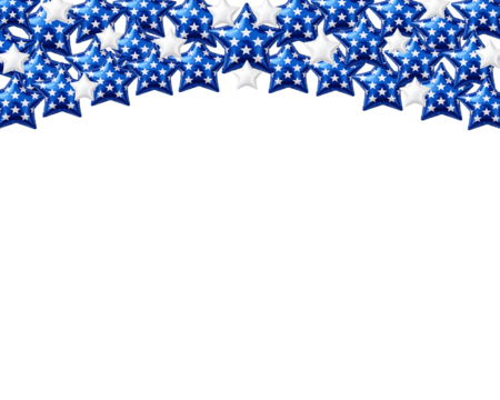 Patriotic star balloon border isolated on transparent background, horizontal layout