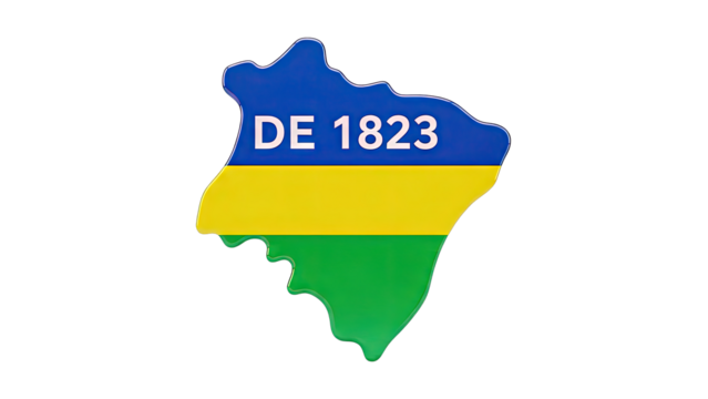 Map shape with "DE 1823" text and flag colors
