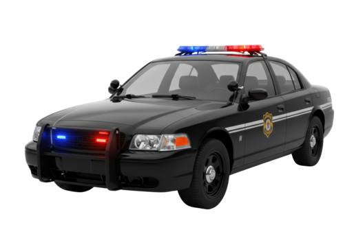 Isolated black patrol car, police vehicle for security, protection of civilians on duty
