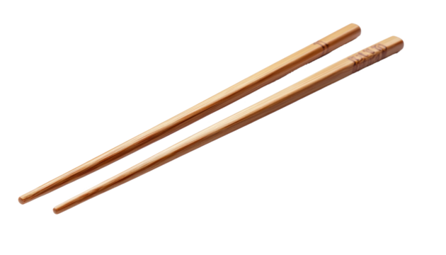 Elegant pair of intricately carved chopsticks japan product photography minimalist close-up, isolated on white or transparent background