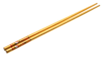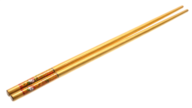 Top view of two chopsticks with a Japanese pattern, isolated on a transparent background