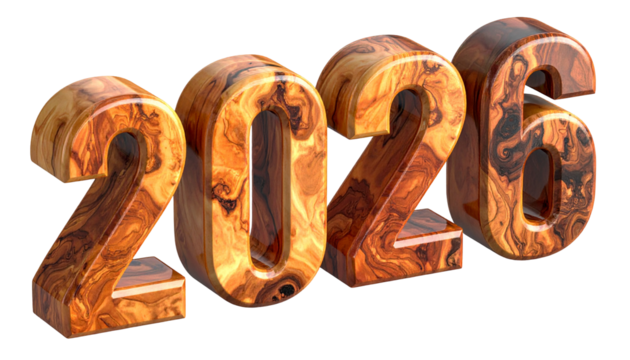Colorful 2026 numbers with abstract texture isolated on transparent background