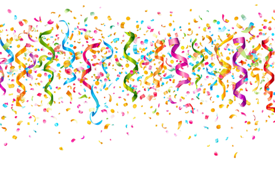 Colorful confetti and streamers explosion on transparent background